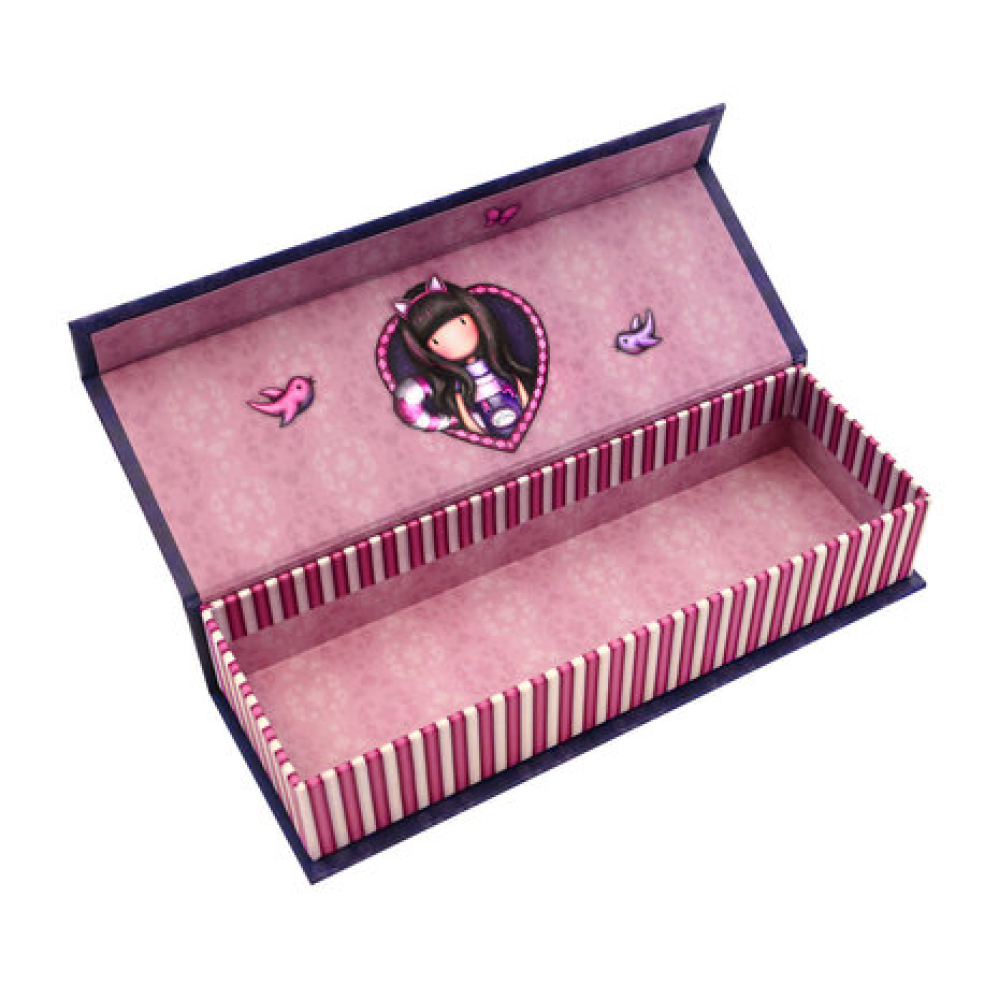 Need somewhere to store your stationery? Introducing our dusky pink Just One Second pencil box. Features the playful Gorjuss icons and artwork and a magnetic closure to keep your stationery super safe. Key Features: Magnetic closure. Approx Measurements: 20x4x7 cm. Material: Paperboard.