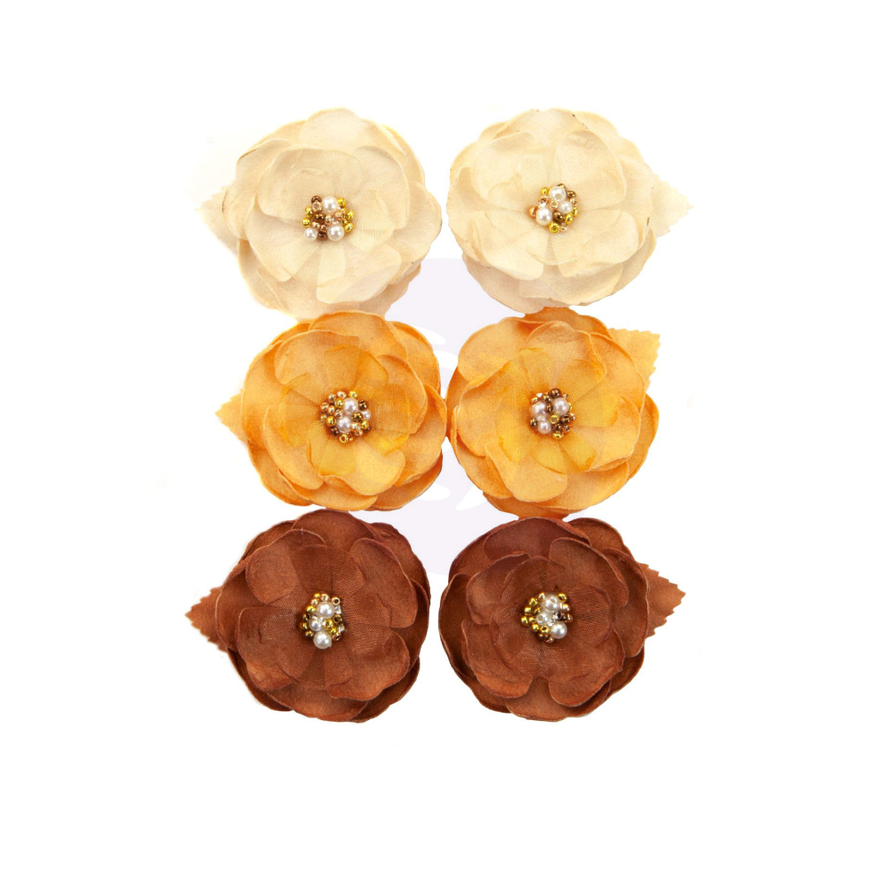 Beautifully handmade, Prima Flowers® always are handmade and delicately detailed. Coordinating with the Autumn Sunset Collection Collection these sweet flowers are perfect for all your paper crafting projects. 6 pcs.