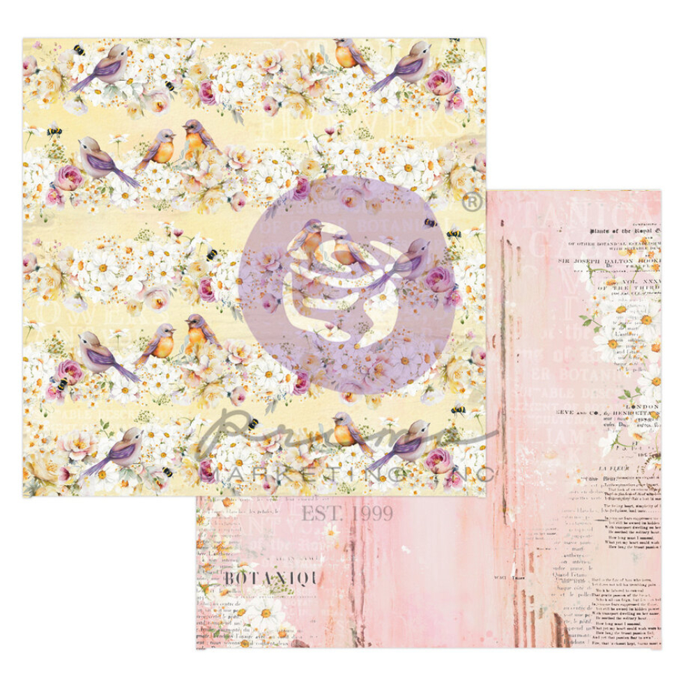 Spring gardens are in full bloom and the air is rich with the sweet scent of flowers. The 3 Girls Tales' beautiful spring story is brought to life with their new collection, 'In Full Bloom'! This beautiful collection promises to uplift your spirits and infuse in you innocence, cheerfulness, and joy. Capture the abundance of spring with lush gardens scenes, vibrant butterflies, and graceful birds that dance across beautiful papers, while beautiful daisy and rose clusters weave stunning and intricate backgrounds! With a playful and sunshiny color palette, 'In Full Bloom' will have you chirping with the birds, leisurely picking daisies and breathing in the crisp fresh air. The 12" x 12" collection pad consists of 14 sheets: six double-sided, designed papers with two of each design. As a bonus, there are also two element sheets featuring all the springtime beauties, ready for you to fussy-cut. Created by The 3 Girls Tale for Prima Marketing, Inc.