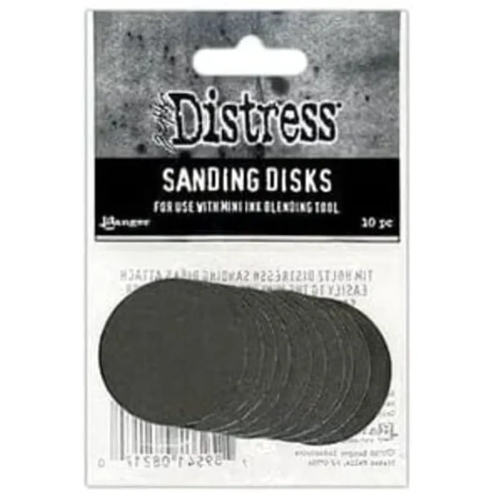 Tim Holtz Distress Sanding Disks are for sanding and distressing your craft projects. The medium-grit sandpaper provides the ideal friction to work on cardstock, chipboard, wood, and more. For use with Mini Ink Blending Tool. Each disk measures 1" (2.54 cm) in diameter. 10 pieces.