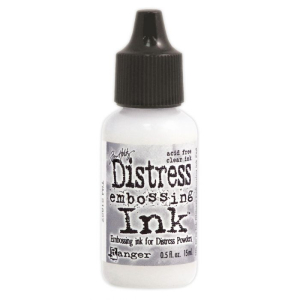 Distress embossing glaze is een nieuw soort embossing poeder. Deze is namelijk niet dekkend, maar transparant! Hierdoor kun je je achtergrond verwerken in je ontwerpen. Ideaal voor het toevoegen van dimensie en transparante kleuren aan je projecten.