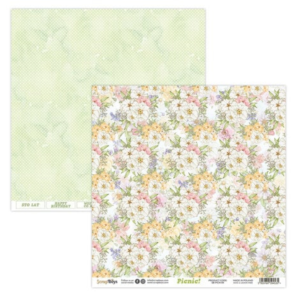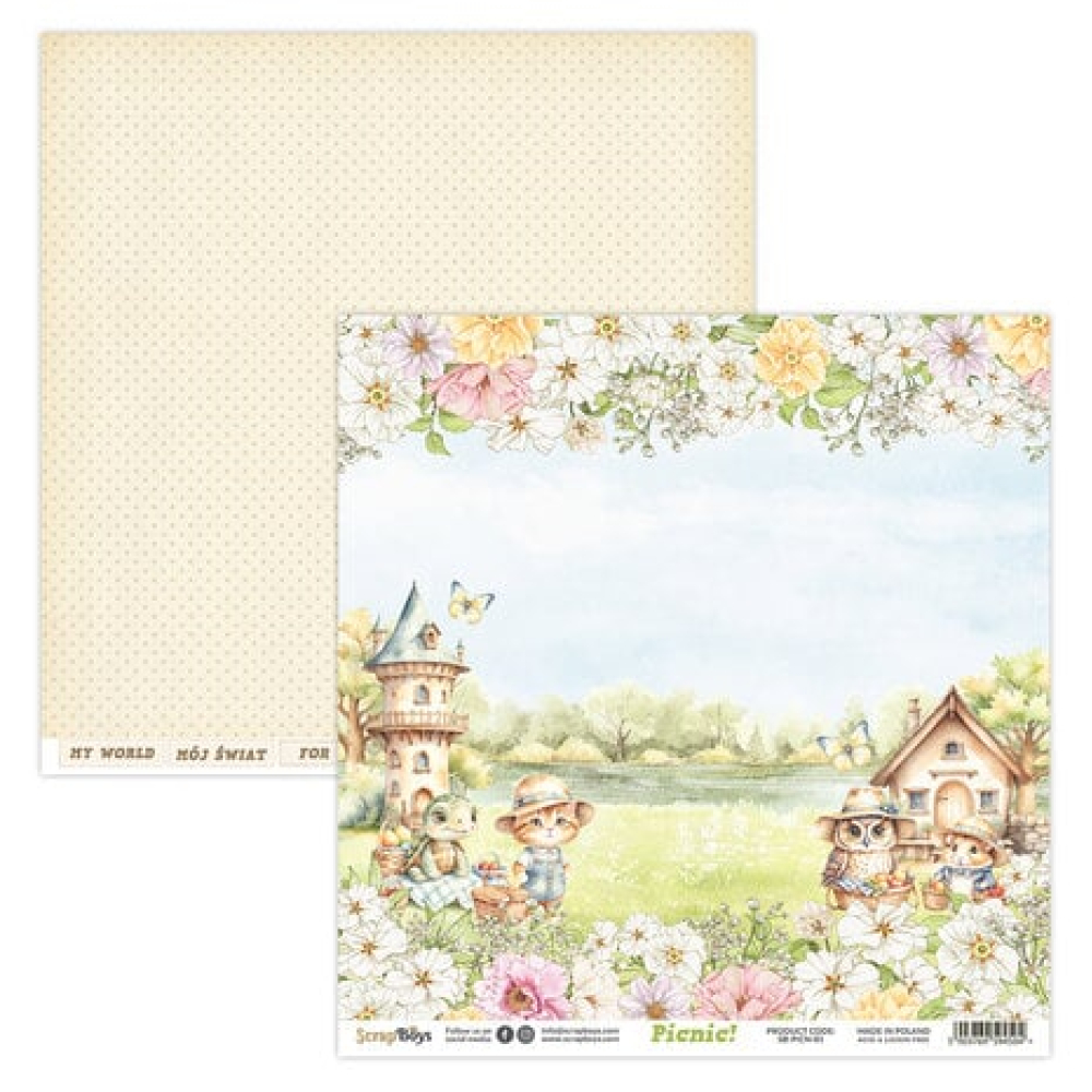 ScrapBoys. Paper pack: 30,5 x 30,5 cm / 12x12 Inch. Grammage: 250 gsm. 12 double faced sheets. Acid & lignin free. Made in Poland.