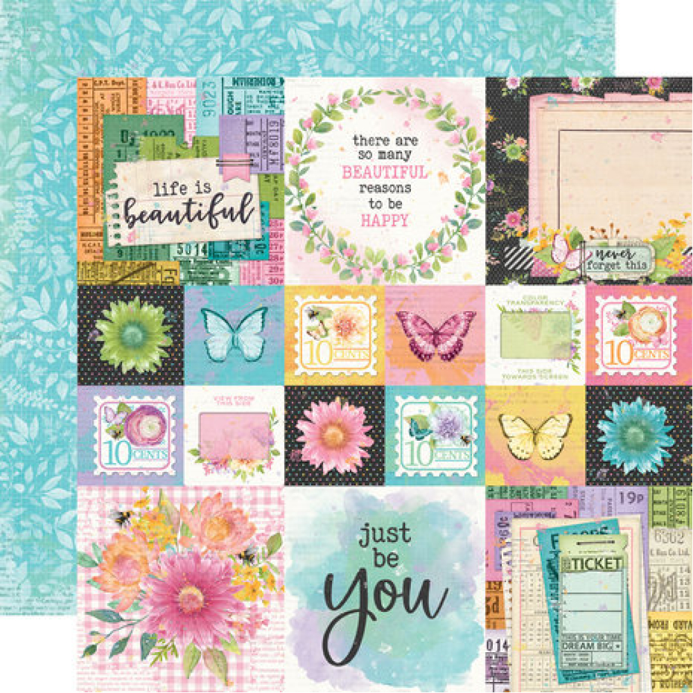 12 sheets of double-sided 12x12 Designer Cardstock including cut apart Journal and Elements Sheets and a 12x12 Cardstock Sticker Sheet with 90 stickers; 102 pieces