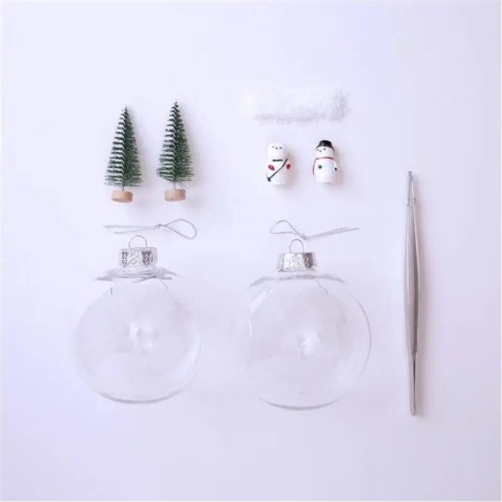 A great way to get into the christmas spirit keep the kids occupied or make as a gift. This pack includes everything you would need to create two adorable baubles for your christmas tree. Following the instructions included you can make your very own decorative ornaments. Kit Contains: 2 x 100mm dia. clear baubles with silver tops and string. Fake snow. 2 x Green trees. 2 x Figurines. Long Tweezers.