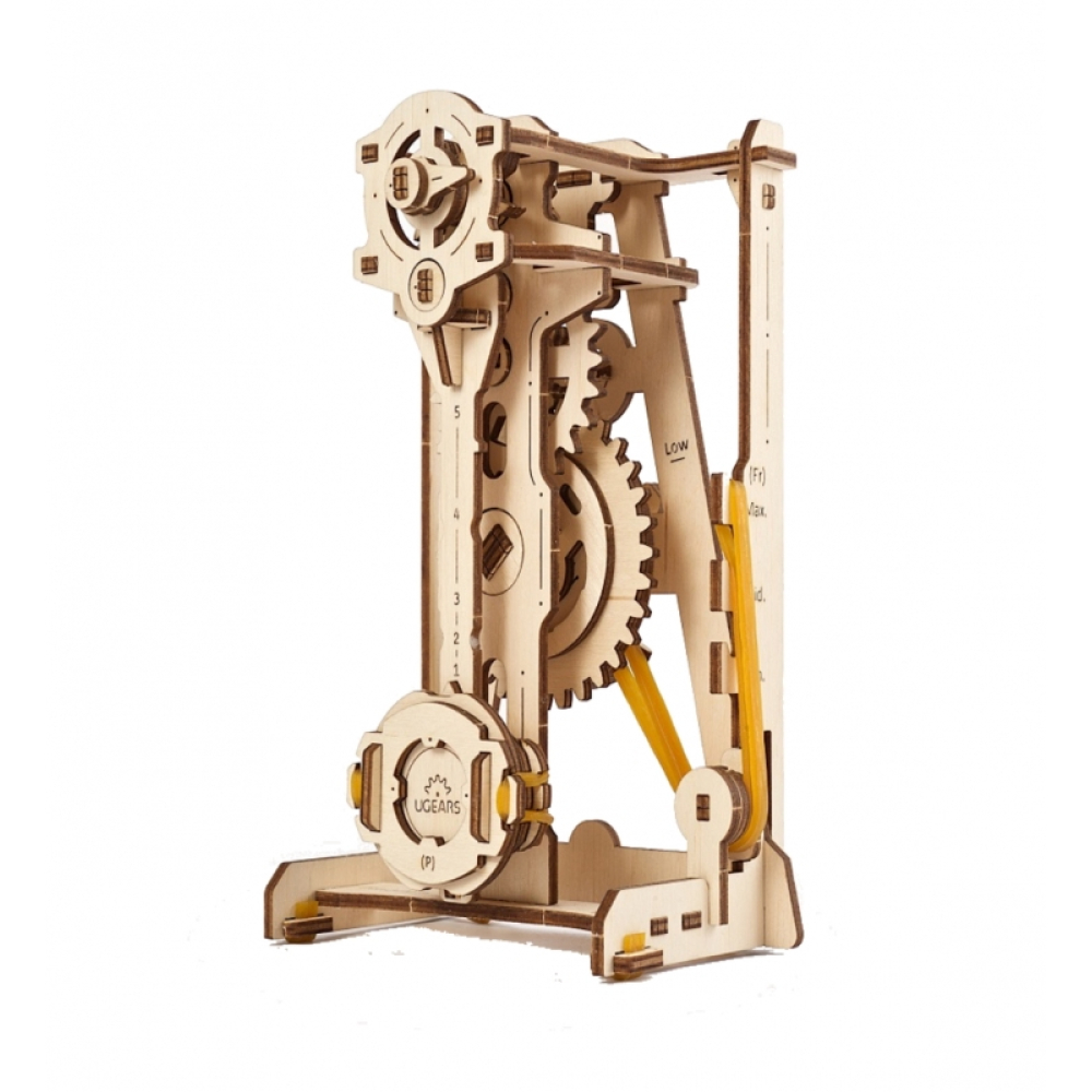 Het model heeft een ankergang die de frequentie van oscillaties regelt en een gewicht, een scope-wiel, tandwieloverbrenging, rubberen band, ratel en pal die de bedieningsfout verminderen. Het model heeft verschillende manieren om de frequentie van oscillaties te regelen: het gewicht van de slinger ‘’bob’’, de verticale positie van het gewicht op de slinger en de spanning van de rubberen band.