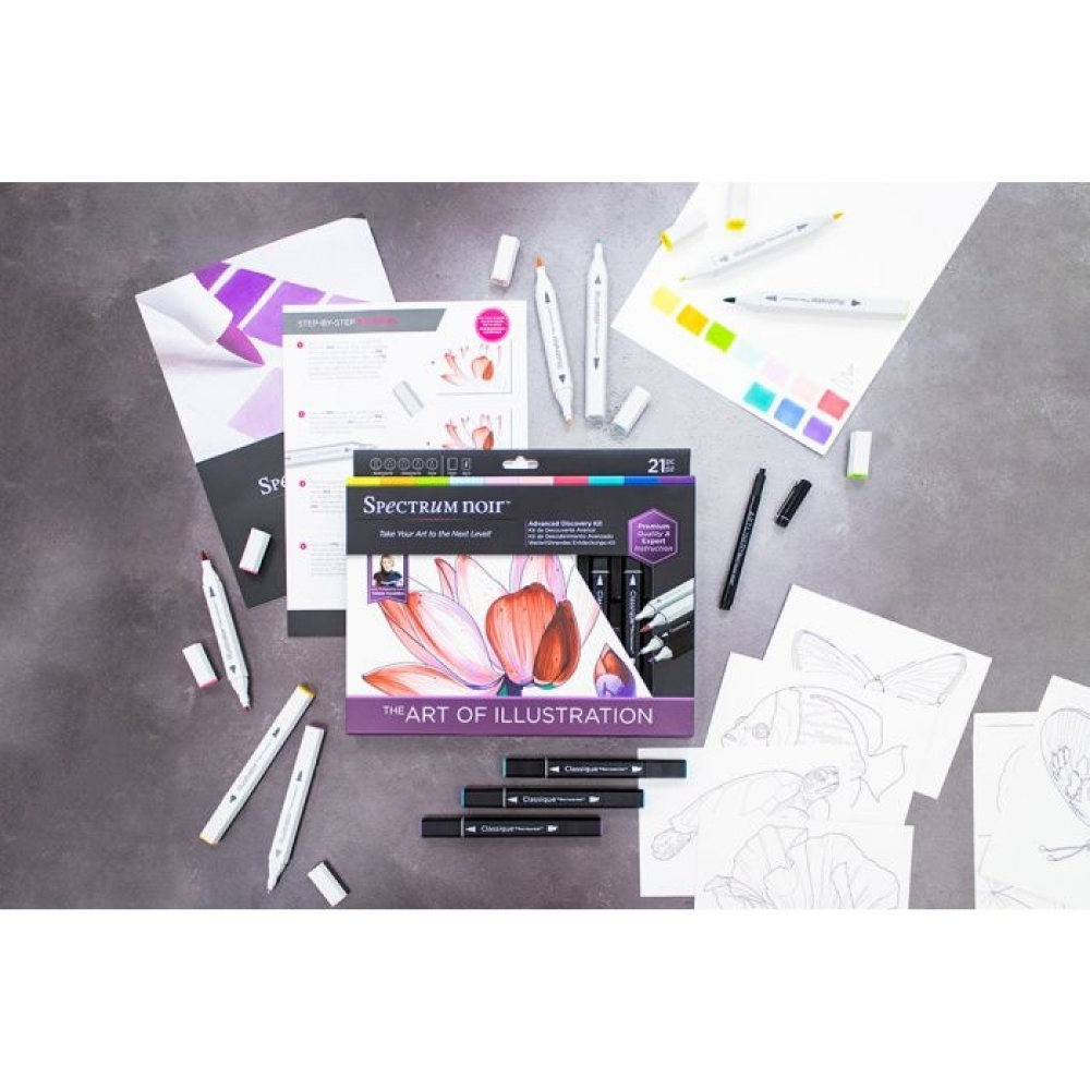 Open de deur naar een nieuwe wereld van creativiteit en kleur met de Spectrum Noir Advanced Discovery Kits! Als je klaar bent om je kunst naar een hoger niveau te tillen, zijn deze premium kunst- en kleursets de sleutel. De Advanced Discovery Kits zijn uitgekozen door een team van getalenteerde kunstenaars en professionals en combineren gedetailleerde instructies van experts met alle essentiële tools die je nodig hebt om een hele reeks nieuwe technieken onder de knie te krijgen, van geavanceerde kleurmenging tot illustratie.