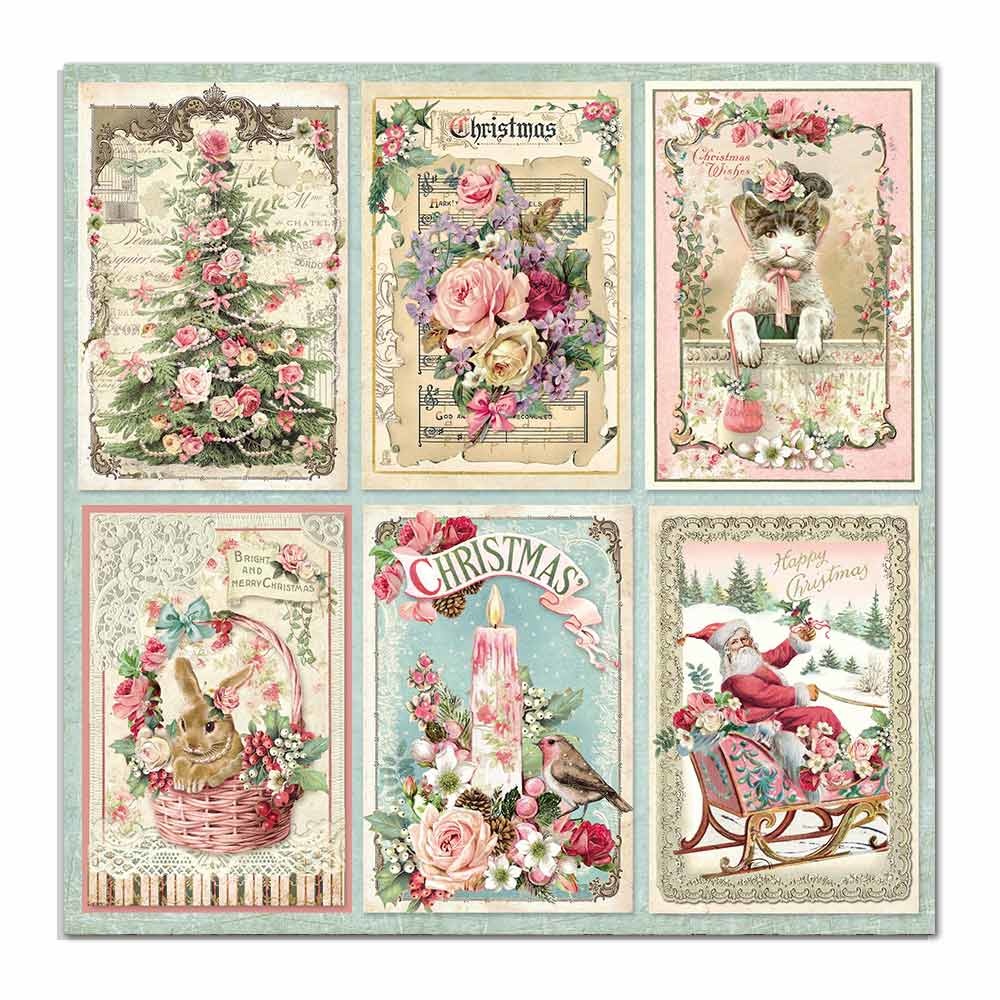 Stamperia Pink Christmas Cards 12x12 Inch Paper Sheet per stuk (SBB702)