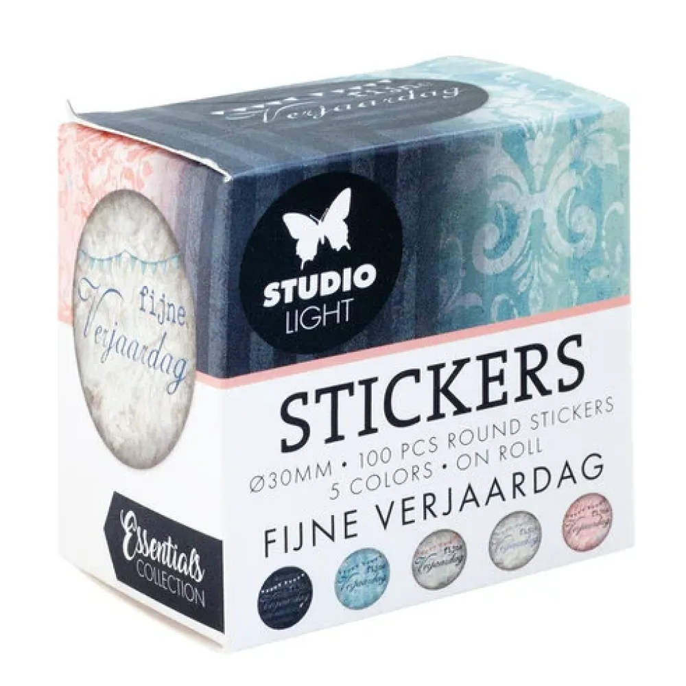Essentials by Studio Light. ø30mm Round Stickers on Roll. 5 colors. FIJNE VERJAARDAG. 55x55x35mm. 100 PC. nr.31.