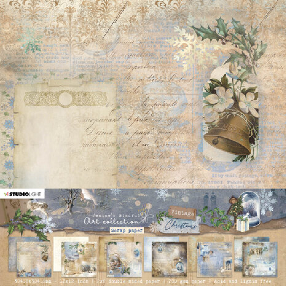 Jenine`s Mindful Art Collection "Vintage Christmas". Mindful Art is consciously taking time for yourself to express your thoughts in a creative way. Anything is possible here. There are no rules, the only rule is that you let your true feelings spreak and that you let your heart, head and hands work together. Only then you can truly give yourself and are you being Mindful. Paper set Background patterns Vintage Christmas 304,8x304,8x3mm 12 SH nr.37