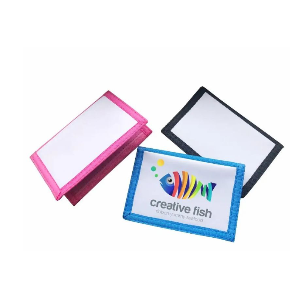 The Subli-Print® Wallet Nylon has various compartments for cards and notes and has a Velcro fastener as well as a print area of approx. 100 x 65 mm on the front. The wallet is approx. 120 x 80 mm when folded.