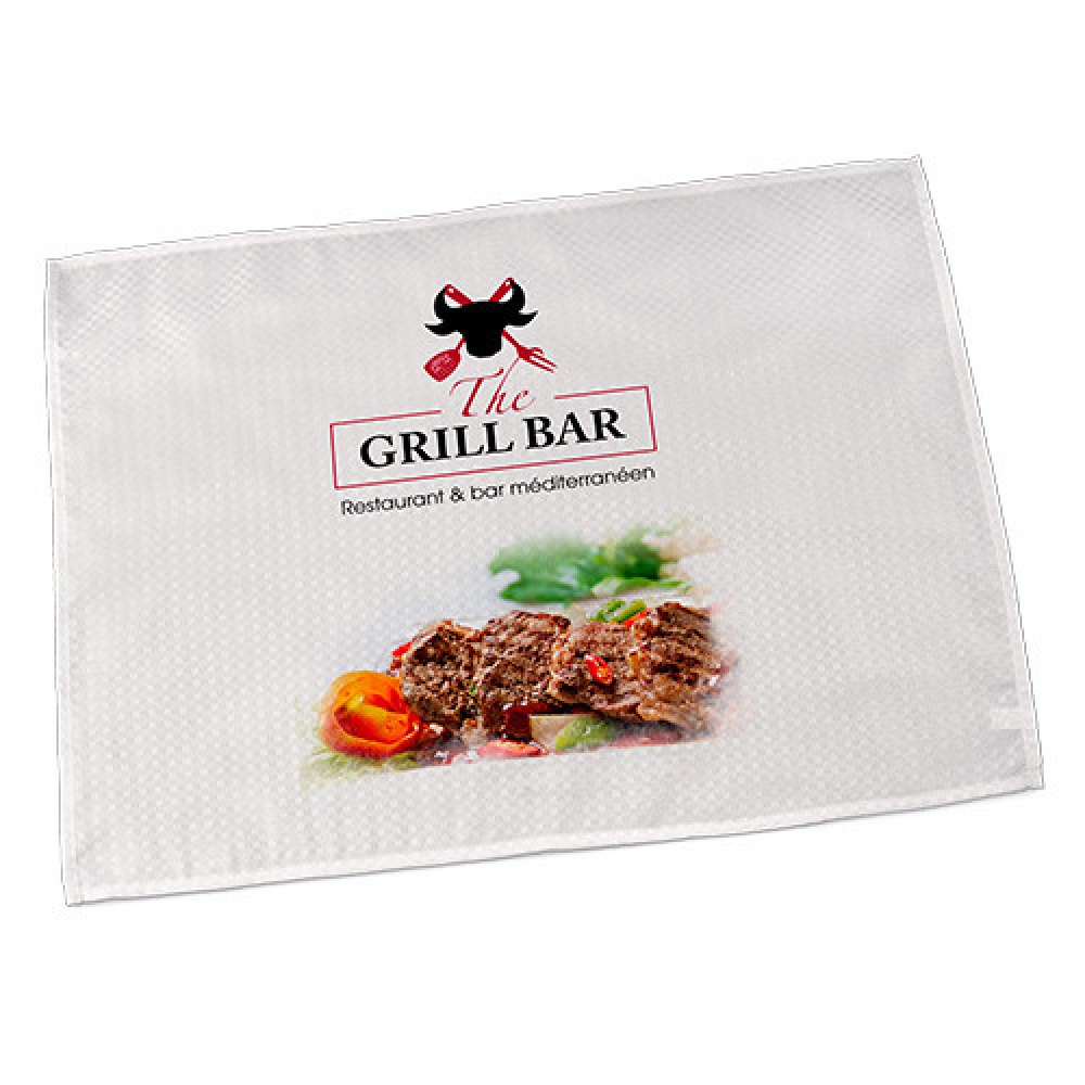 Klassieke witte theedoek. Creatief printen is mogelijk door de 100% microvezelstof, zowel gedeeltelijk als over het gehele oppervlak.