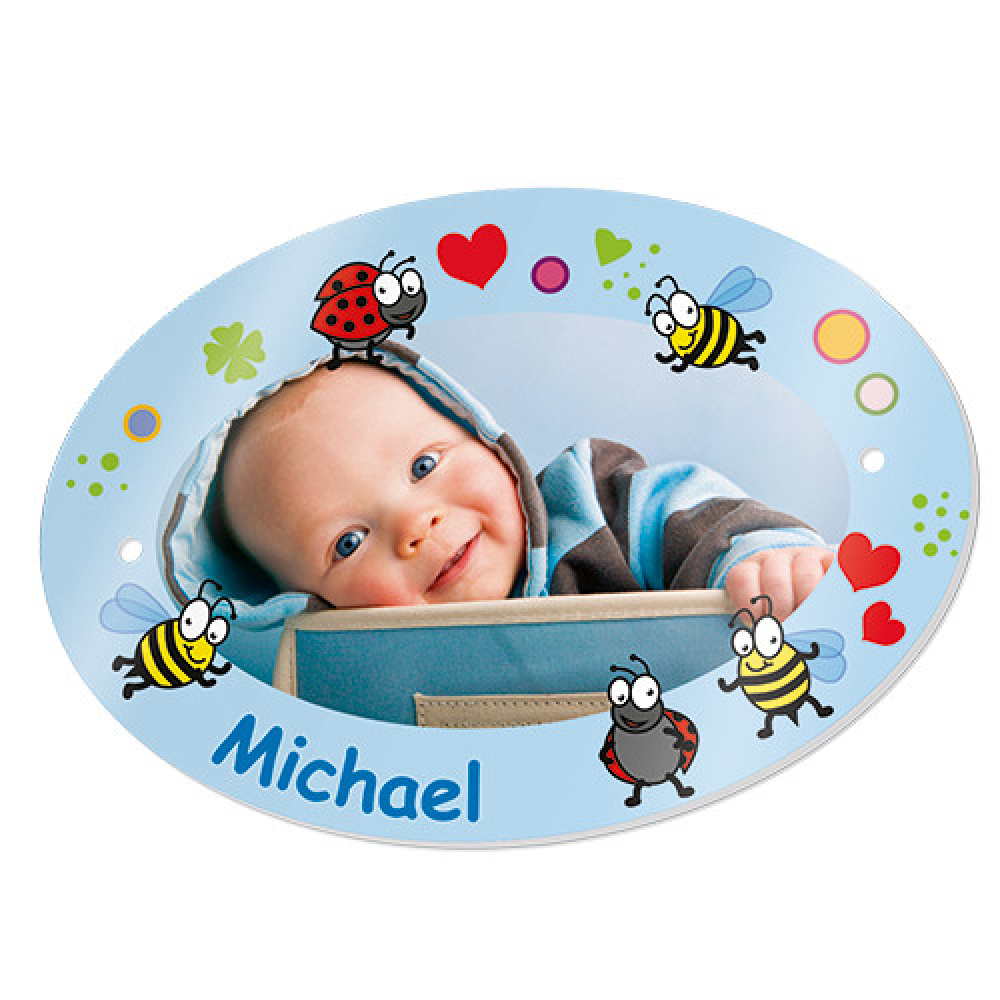 Het is gemaakt van wit plastic en heeft een glanzend oppervlak. Hij heeft twee praktische gaatjes, zodat je hem gemakkelijk ophangt. Voor de deur van de kinderkamer of voor de entree van het huis, zoals uw klanten het graag hebben.