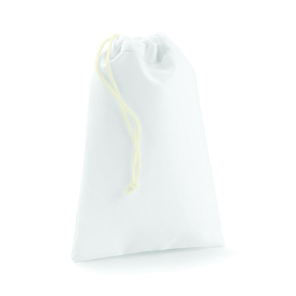 Trekkoord sluiting. Afneembaar koord voor gemakkelijke decoratie. Voor en achter te decoreren. Scheur het etiket uit.