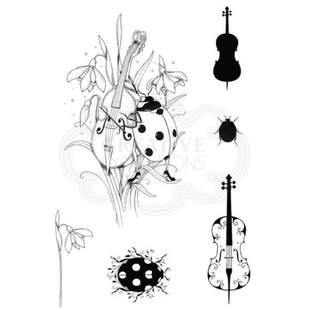 This A6 stamp is part of the Wee Folk series of stamp sets. This musical ladybird has a big job on her hands playing her cello. All of the stamps are hand illustrated and come with additional elements for you to create a happy, fun scene. Lots of fun to colour whatever your favourite medium is. All of the Wee Folk Series work brilliantly together. These stamps can be used with all sorts of medium including paper, card, mdf etc. Ready to mount on an acrylic block the stamps can be used with ink pads, paint, or used with pigment and embossing powder. They are suitable for any other surface depending on the ink choice. Store flat away from heat and sunlight. Deep etched, quality photopolymer. Designed and made in the UK. A6 main stamp 9.5 x 6.0 cm. 6 separate images.1 cellist, 1 cellos, 2 ladybirds, 1 flower.