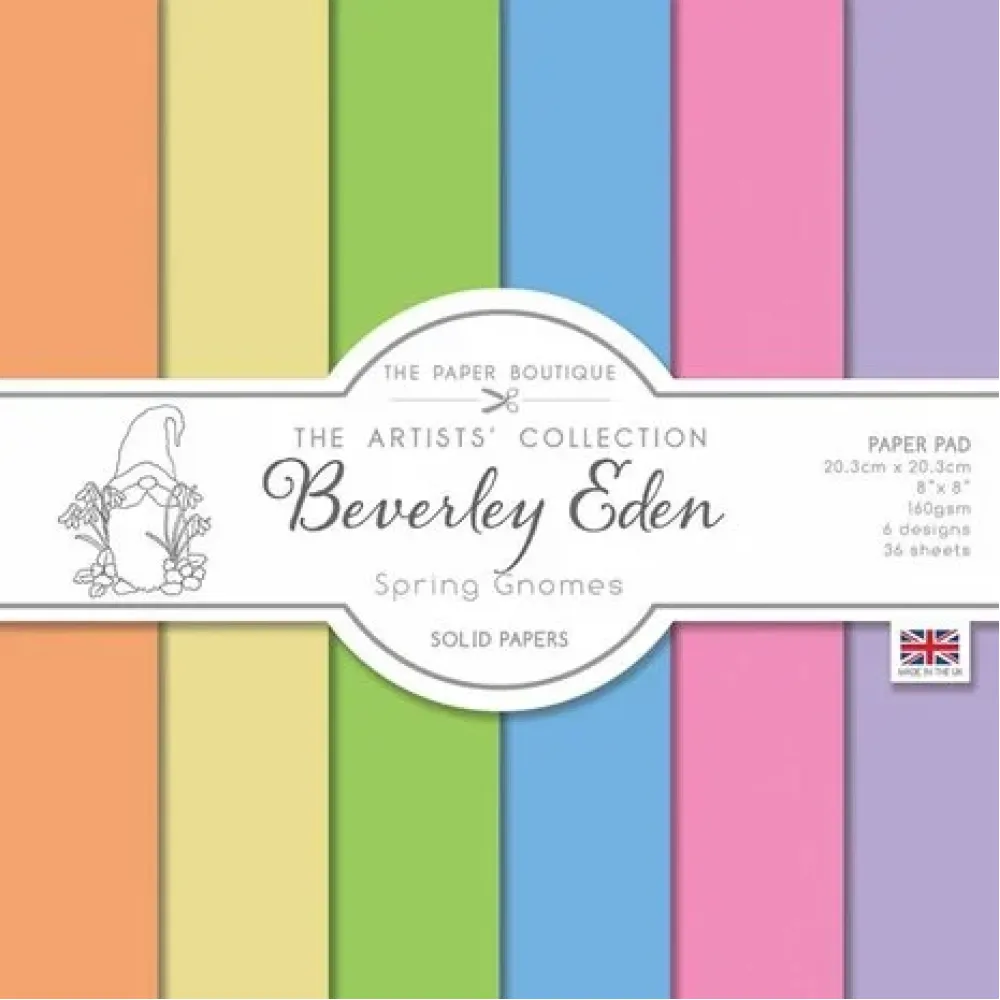 The Paper Boutique Spring Gnomes Paper Collection contains artwork by Beverley Eden, that is sure to make you smile as you craft, the collection contains designs suitable for all ages, a fun collection that will mix and match to make cards, scrapbook pages, mixed media project, in fact this bright colourful collection is a versatile set of papers that will come out time and time again. The collection contains a versatile range of die-cut toppers, embellishments, inserts, patterned paper and coloured card. The solid colours Pad has 36 sheets printed on uncoated 160gsm card. There are 6 solid colour papers with 6 sheets of each colour. The colours chosen are exclusive to this collection. The uncoated paper allows the crafter to add their own twist on the designs using inks and chalks etc. The weight of paper is great when creating dimensional embellishments or for die cutting. The collection also has a Paper Kit, a Paper Pad, a Finishing Touches Pad, an A4 Insert Collection, and a set of blank toppers for colouring to suit your projects. Made in the UK.