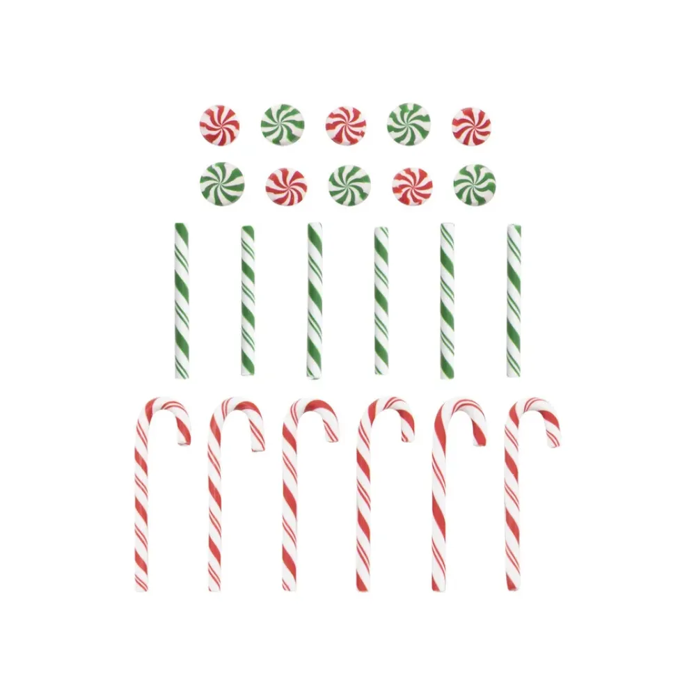 Tim Holtz Ideaology Confections. May your holidays be as sweet as these miniature striped candies and candy canes, perfect for adding to garlands, wreaths, gifts, dimensional projects, or crafts. Fill Tim Holtz Display Dome or use them as dimensional elements in a Vignette Box. Round candies measure 3/4" in diameter, candy canes measure 2" and sticks measure 1-1/2" in height. Constructed of resin. 22 pieces.