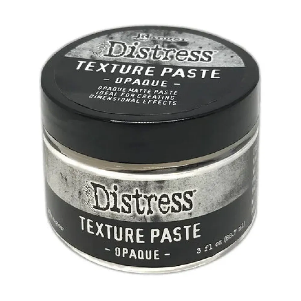Tim Holtz Distress Texture Paste is an opaque medium ideal for creating dimensional effects on surfaces. Use with stencils for defined texture or apply freely with a palette knife. Colorize wet or dry using a variety of Distress products. Available in Matte and Crackle, each in a 3 oz jar.