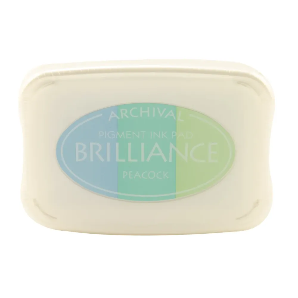 Brilliance Archival Pigment-stempelkussen. Voor gewoon papier, perkament, foto's, hout en andere poreuze oppervlakken. Sneldrogende pigmentinkt. Toepassing: Ongestreken papier, gestreken papier, perkament, foto, leer (gelooid leer), cellofaan, ongeverfd hout, polymeerklei, krimpfolie, terracotta. Droogtijd 10 - 15 minuten op ongestreken papier. Bij gecoat papier zal de droogtijd langer zijn. Varieert afhankelijk van ondergrond/materiaal, vochtigheid etc. Embossing: Bij normaal (poreus) papier is de kans groot dat embossingpoeder niet goed blijft plakken vanwege de snelle droging. Inkt met hoge dekking werkt uitstekend op donker papier! Inkt (uit inkt) is gemakkelijk te verspreiden en kan als verf gebruikt worden. Inkt kan ook in klei worden gemengd. Gebruik inkt met de rakel of sponsdaubers om verschillende achtergrondeffecten te creëren. Vul het kussen indien nodig opnieuw in (met inkt, apart verkrijgbaar) om het kussen vochtig te houden. Laat de pad niet volledig uitdrogen. Vervang de binnenste plastic hoes en hoes na gebruik. Blootstelling aan lucht zal ervoor zorgen dat het stempelkussen uitdroogt. (Binnenhoezen niet vereist voor Dew Drop-pads.)