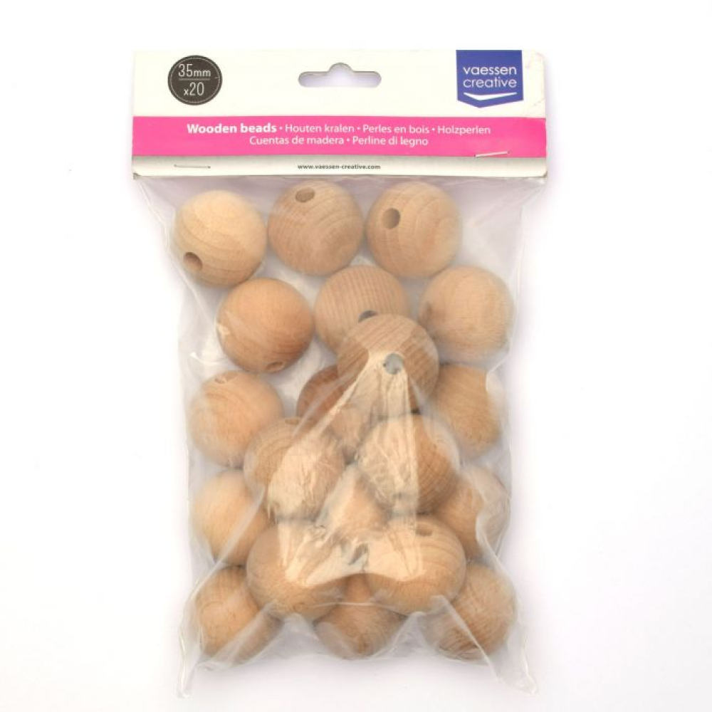 De ronde houten kraal is gemaakt van massief hout en heeft een glad oppervlak. Dankzij een gaatje in het midden zijn de houten balletjes gemakkelijk te bevestigen en te rijgen.