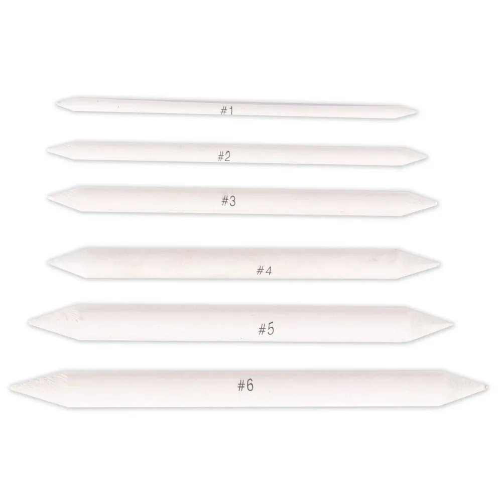 Deze set bevat 6 doezelaars in verschillende diktes. Gebruik de dunne doezelaars om gedetailleerd te werken. De dikkere doezelaars zijn erg geschikt wanneer je werkt met grafiet. De doezelaar maak je eenvoudig schoon door deze, net als een potlood, met een scherp mes te slijpen of door met de punt over een stukje schuurpapier te wrijven.