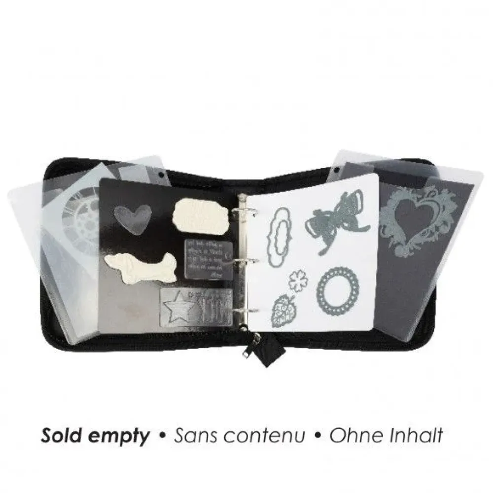 In deze hippe map berg je snel en eenvoudig je clearstamps, rubber stempels, stansmallen (dies) en embossing folders op. De map is voorzien van een ringband en een ritssluiting. Het handige handvat zorgt ervoor dat je de map gemakkelijk mee neemt. In de map is er minimaal plek voor 8 insteekhoezen of magneetvellen. Te gebruiken in combinatie met magneetvellen, magneetvellen in insteekhoezen, doorzichtige insteekhoezen en stempel opbergvellen.