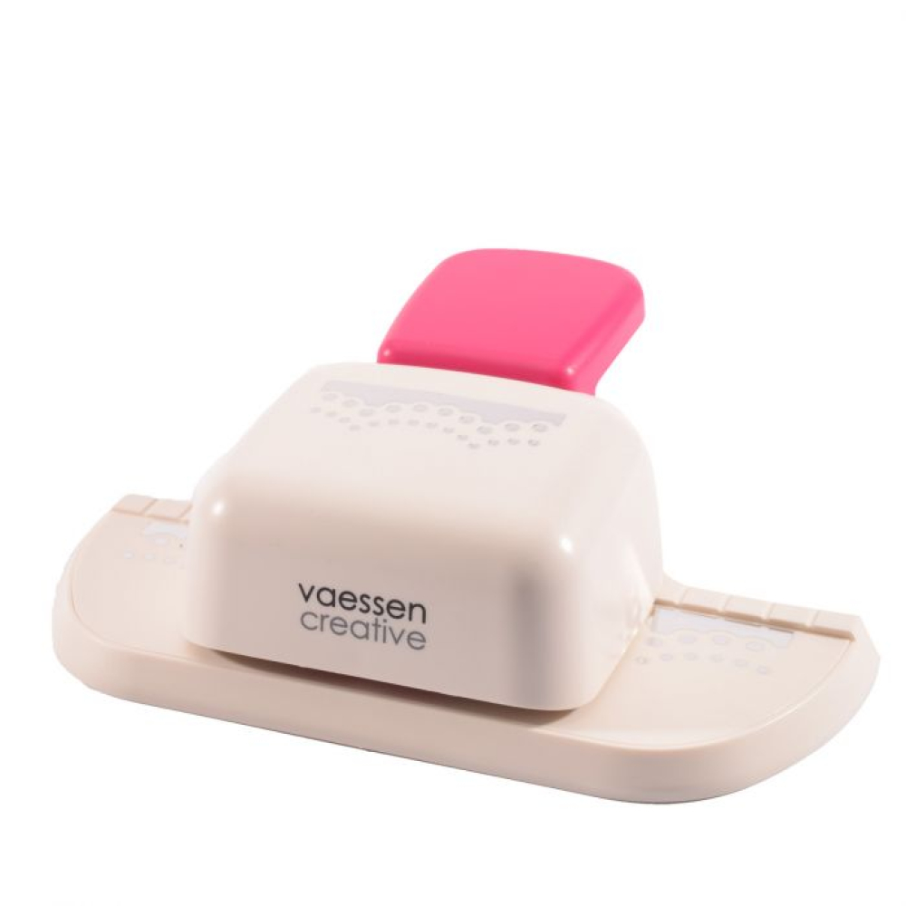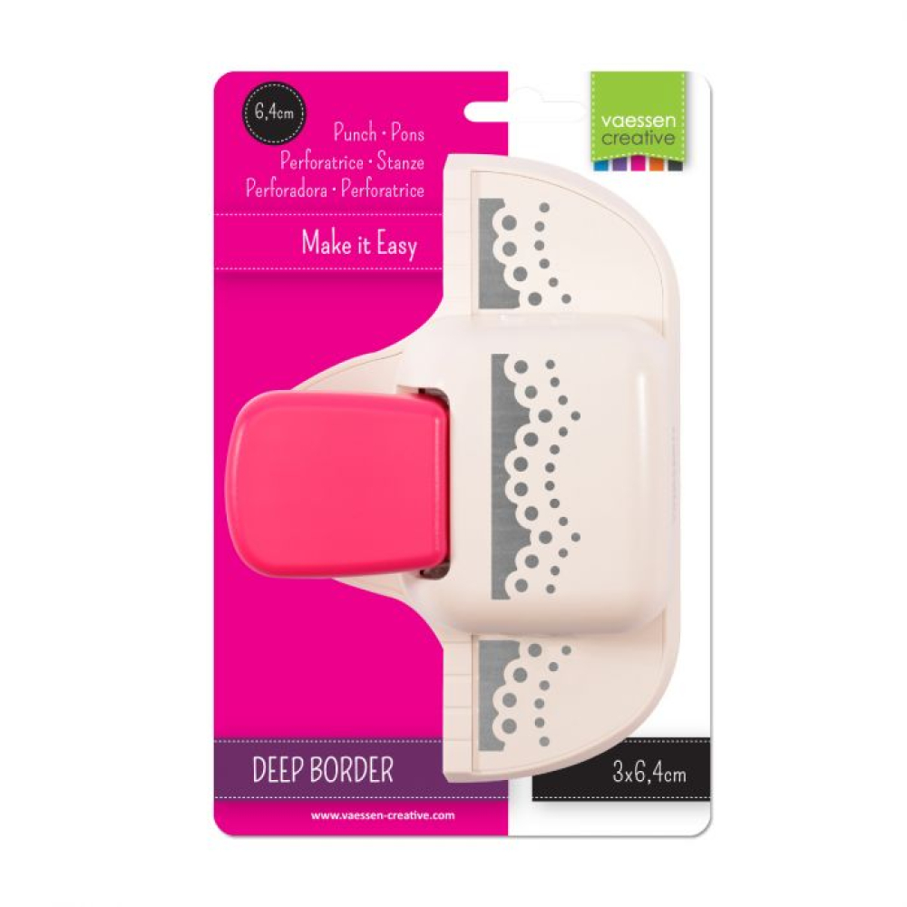 De extra diepe randpons van Vaessen Creative maakt mooie decoratieve borduurpatronen aan kaarten, geschenkverpakkingen, scrapbookprojecten of andere papieren kunstwerken tot 2 1/2 keer de grootte van een standaard randpons. De randponsen zijn gemakkelijk in gebruik, door middel van de handige uitlijntool, de afgebeelde patronen links en rechts op de pons, kunt u gemakkelijk een patroon ponsen op een groter vel papier.