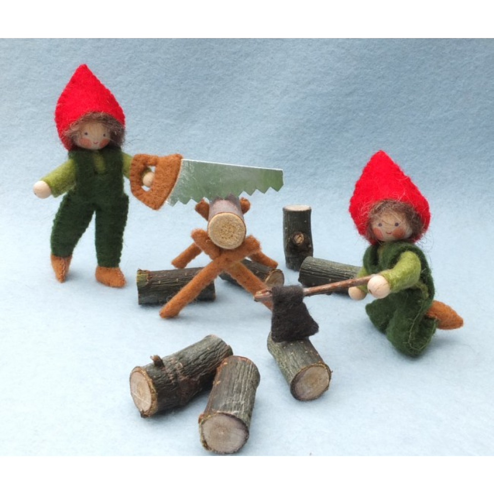 In de serie “bezige kabouters” zijn er nu twee houthakkers. Want je hebt wel hout nodig om een vuurtje voor de Kaboutersoep te maken. Het pakket bevat materiaal voor twee kabouters, zaag, bok, bijl en houtjes.