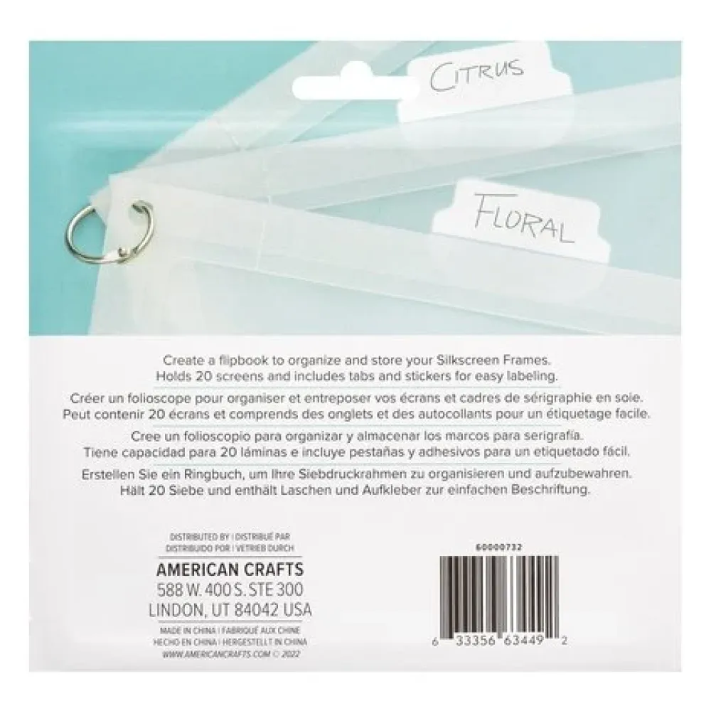 Easily turn any design cut on your electronic cutting machine into a screen print with the Vinyl Print Press by We R Makers! Create a flipbook to organize and store your Silkscreen Frames with this storage kit. It holds 20 screens and includes tabs & stickers for easy labeling and organization! Use it for all your favorite designs.