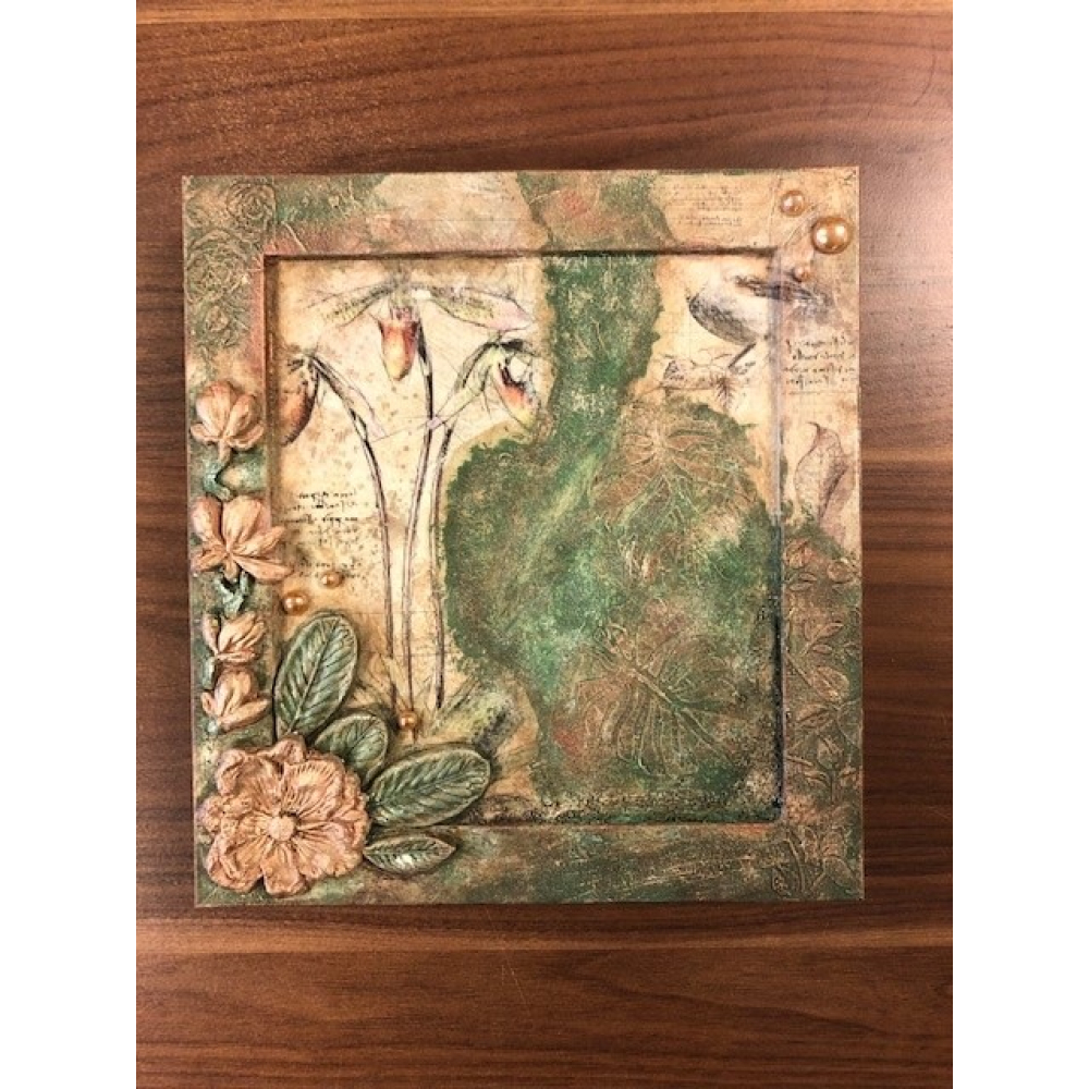 We gebruiken mallen, klei, stencils, rice papier, acrylverf , en wax.
